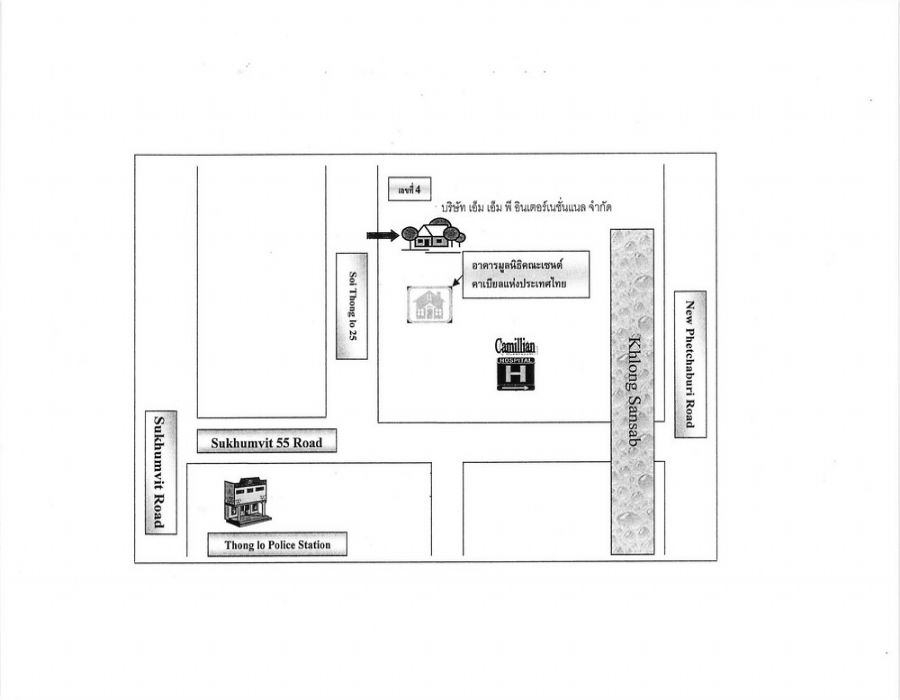 เลขที่ 4 ซอยแสงเงิน ถนนสุขุมวิท 55 แขวงคลองตันเหนือ เขต/อำเภอ วัฒนา จังหวัด กรุงเทพฯ 10110