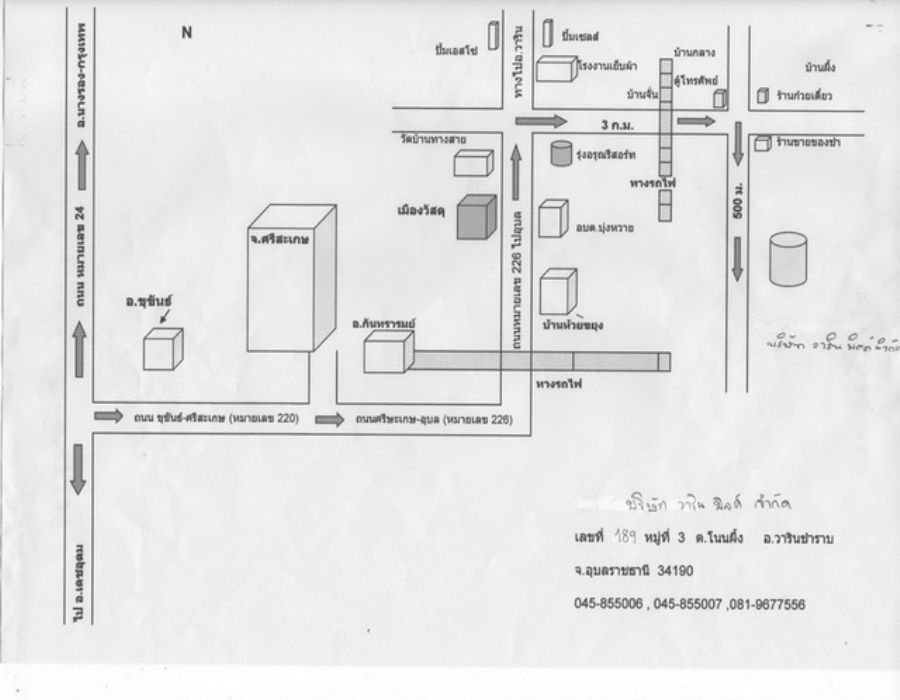 189 หมู่ 3 ต.โนนผึ้ง เขต/อำเภอ วาริน ชำราบ จังหวัด อุบลราชธานี 34190
