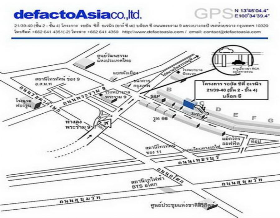 21/39-40 ชั้น 2-4, โครงการรอยัลซิตี้ อเวนิว, (อาร์.ซี.เอ., บล๊อก ซี (อยู่ระหว่างถนนเรียบทางด่วนพระราม 9 (ใกล้โรงแรม Golden Tulip) และถนนเพชรบุรีตัดใหม่ (เข้ามาทาง ท๊อป ซุปเปอร์มาร์เก็ต สาขาอาร์.ซี.เอ.), เขตห้วยขวาง, กรุงเทพฯ 10320 เขต/อำเภอ ห้วยขวาง จังหวัด กรุงเทพฯ 10320