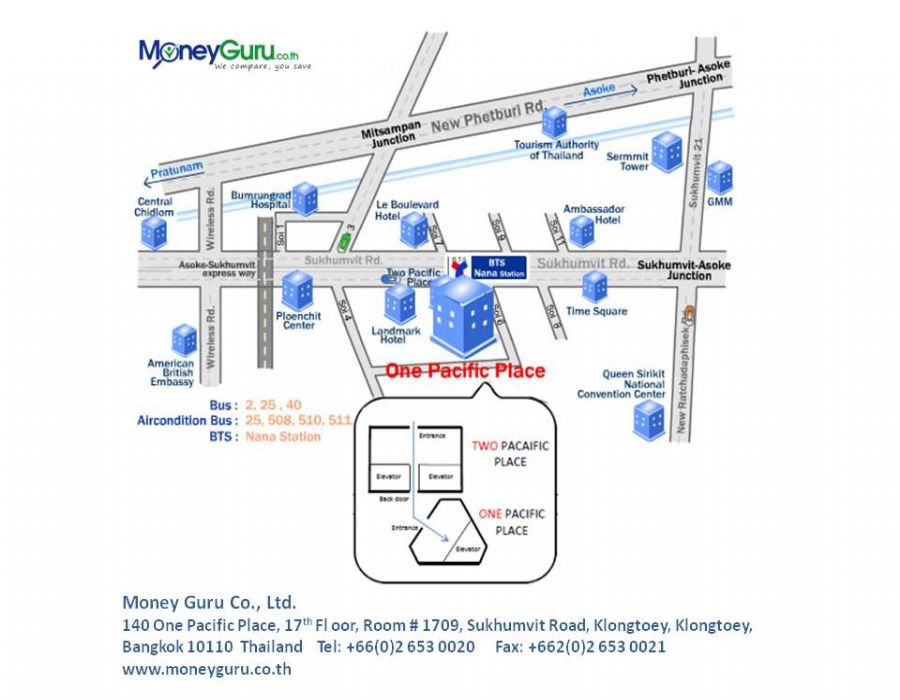 140 อาคารวันแปซิฟิค,ห้อง 1709, ชั้น 17,ถนนสุขุมวิท, แขวงคลองเตย เขตคลองเตย กรุงเทพฯ 10110 เขต/อำเภอ เขตคลองเตย จังหวัด กรุงเทพฯ 10110